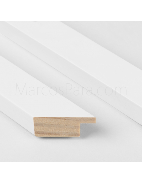 Marco de madera plana de 2.8cms de frontal y 1.7cm de profundidad, disponible en color roble, nogal, plata, blanco y negro.