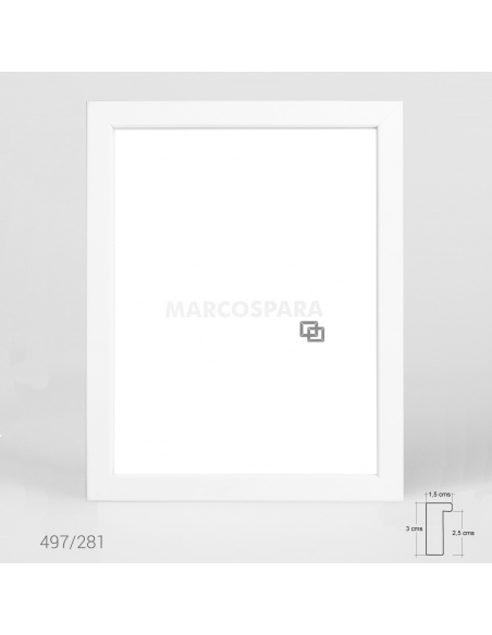 Marco de madera tipo caja de 1.5cms de frontal y 3cm de profundidad, disponible en color blanco y negro.