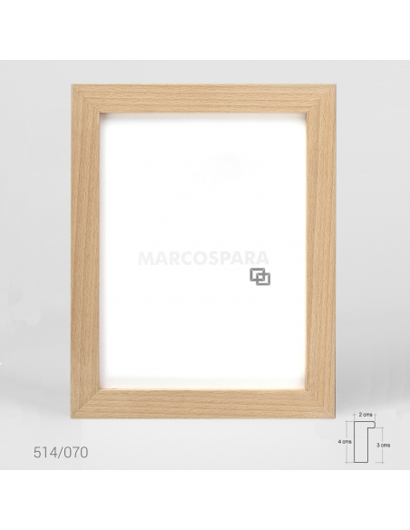 Marco de madera tipo caja de 2cms de frontal y 4cm de profundidad, disponible en color roble, haya, maple y nogal.