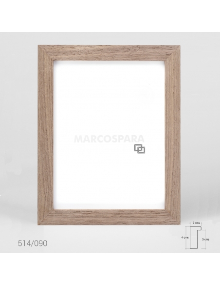 Marco de madera tipo caja de 2cms de frontal y 4cm de profundidad, disponible en color roble, haya, maple y nogal.