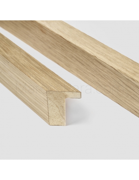 Marco de madera tipo taco de 1.5cms de frontal y 3cm de profundidad, disponible en color roble, haya, maple y nogal.