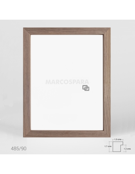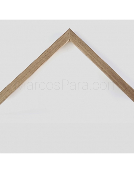 Marco de madera tipo taco de 1.5cms de frontal y 1.7cm de profundidad, disponible en color roble, haya, maple y nogal.
