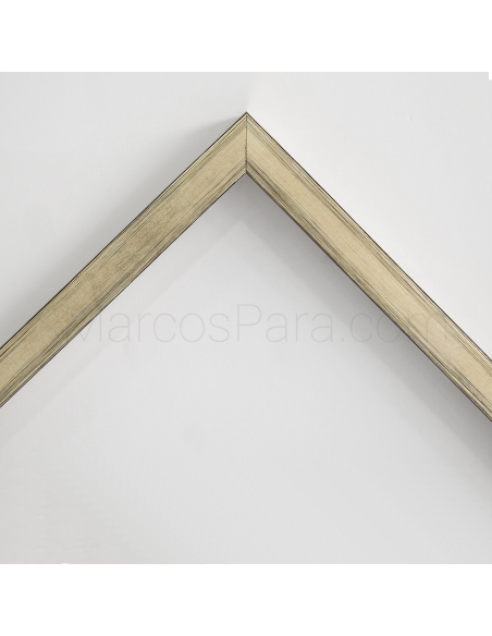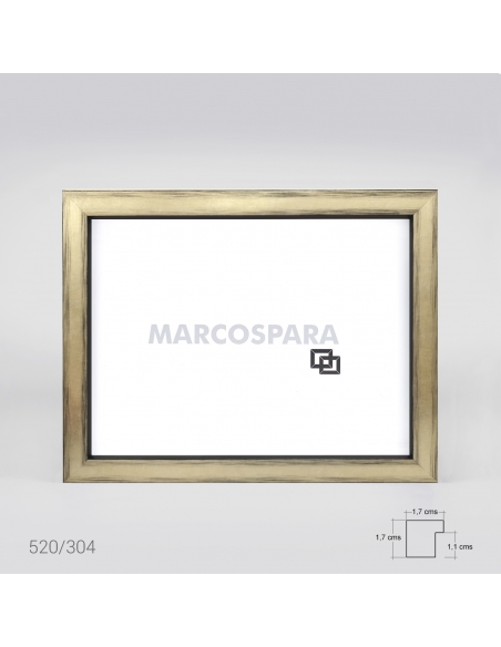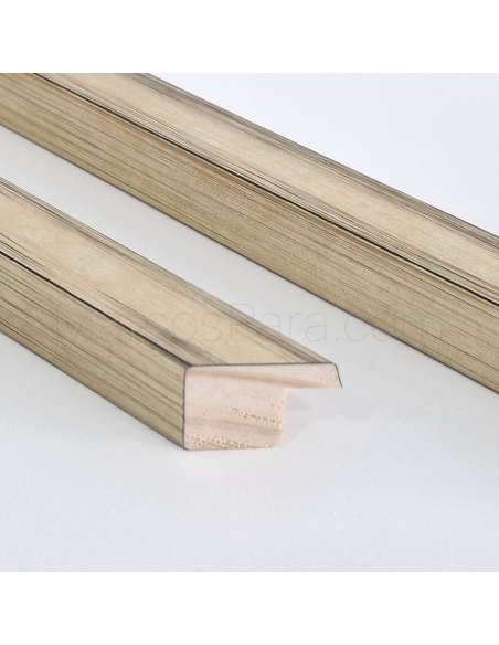 Marco de madera tipo taco de 1.7cms de frontal y 1.7m de profundidad. Disponible en Oro, Plata y Nogal Envejecido.