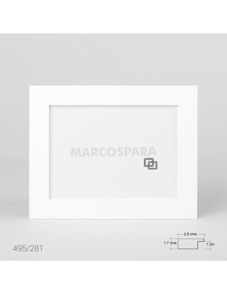 Marco de Madera en color Blanco Mate, Negro Mate, Roble y Plata de 3cms de ancho en forma de Plana.