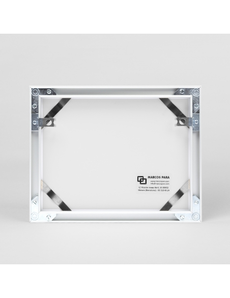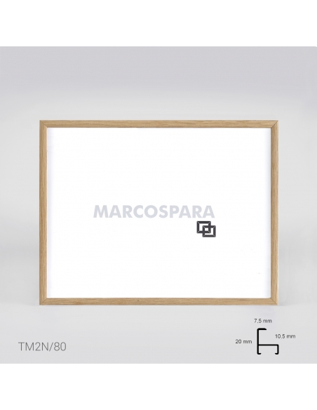 Marco de aluminio de 0,8 cms de frontal, forrado en chapas naturales de maple, haya, roble y nogal. Ideal para grandes formatos.