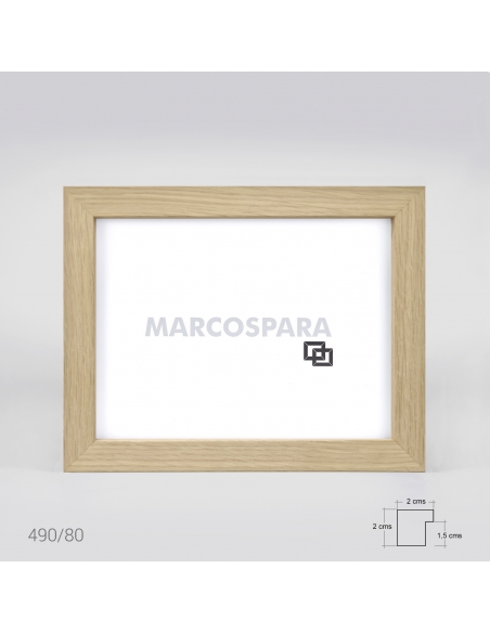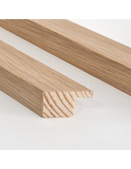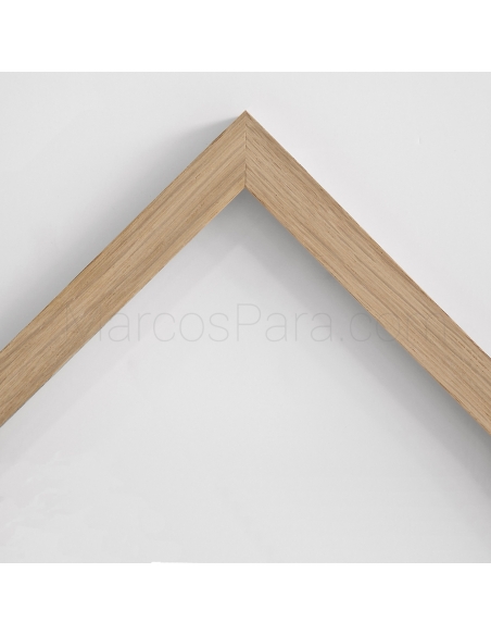 Marco de madera con chapa natural sin barnizar, tipo taco de 2cms de frontal y 2m de profundidad. Disponible en Maple, Nogal, Haya y Roble.