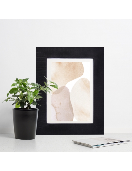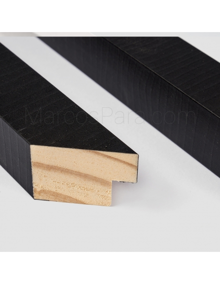 Marco de madera tipo taco con galce al fondo de 3cms de frontal y 3cm de profundidad. Disponible en negro gravado y blanco gravado.