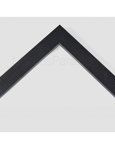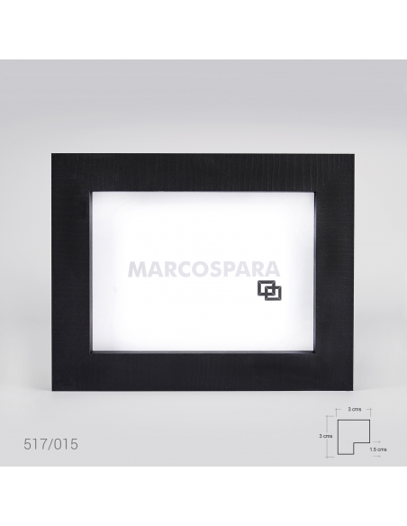 Marco de madera tipo taco con galce al fondo de 3cms de frontal y 3cm de profundidad. Disponible en negro gravado y blanco gravado