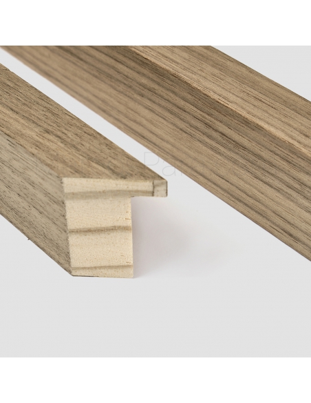 Marco de madera con chapa natural sin barnizar, tipo caja de 2cms de frontal y 4cm de profundidad. Disponible en Maple, Nogal, Haya y Roble.